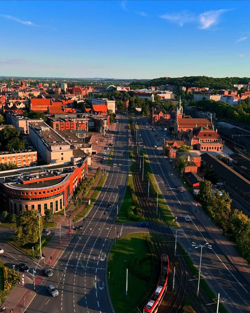z widokiem na Stocznię Gdańską oraz Stare Miasto Gdańsk.
